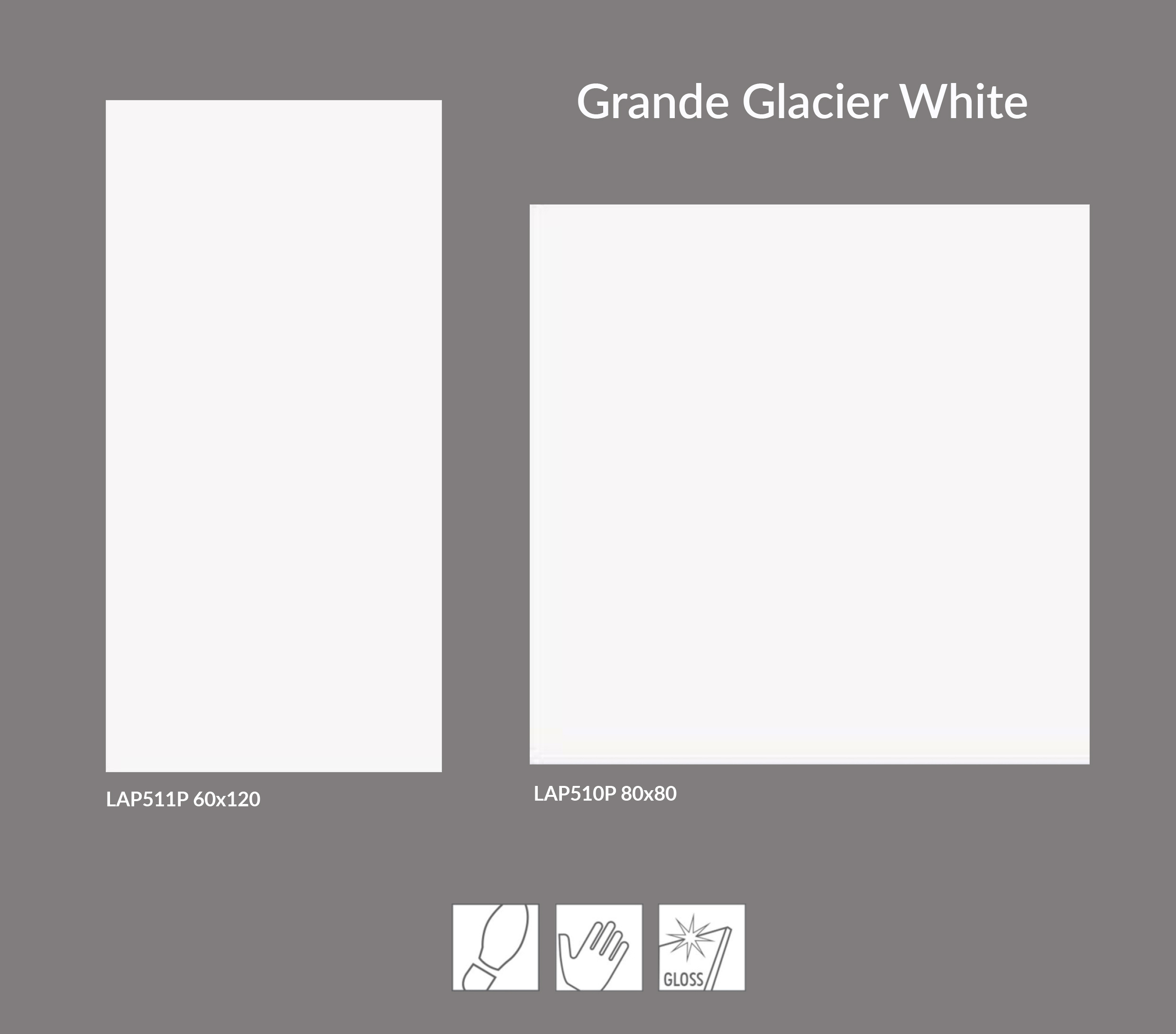 Beautifully crafted, the large format 80x80cm or 60x120cm Grand Glacier White creates the sought after look of High Gloss and High Definition White. Our Porcelain ranges are of very high quality and strength, meaning longevity and durability while retaining its Nano Polish high gloss finish in any setting. Frost proof and quality checked, these large format tiles will make a striking impression for any project.